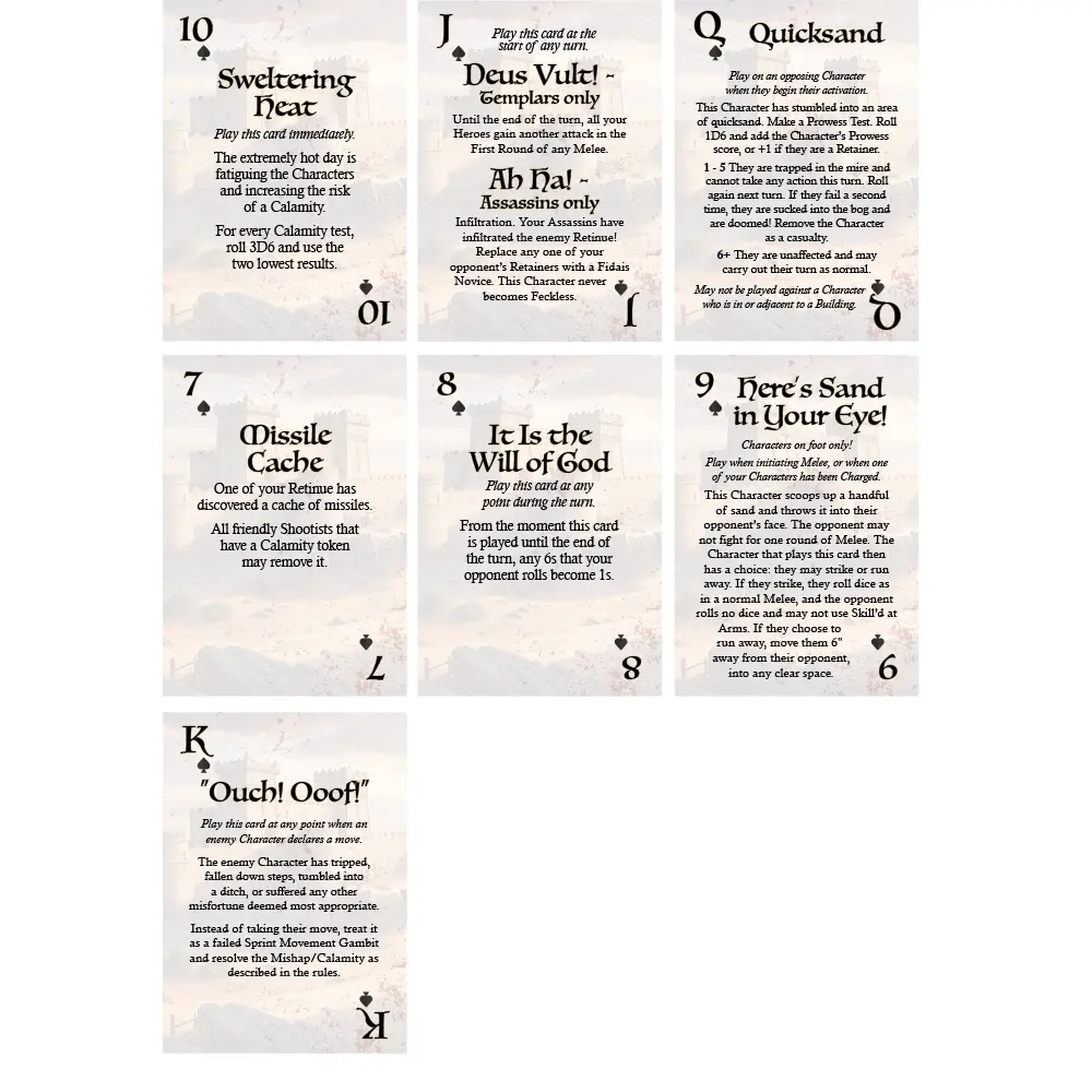 All the cards you need to play a game of Assassins and Templars. This deck comprises 35 high-quality laminated cards in a plastic case.
