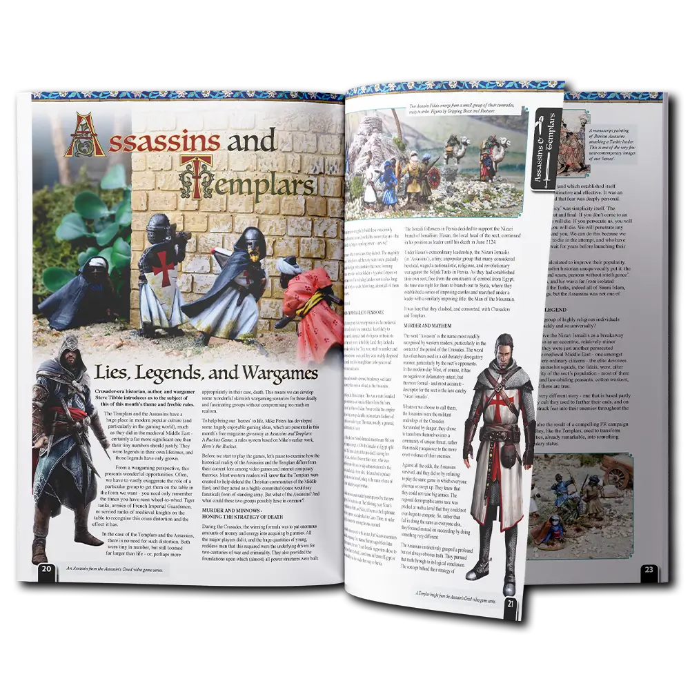 Welcome to this Assassins and Templars-themed issue of Wargames Illustrated. Inspired by the release of Assassins and Templars: A Battle in Myth and Blood, a new book written by Steve Tibble and published by Yale University Press, this month’s magazine comes with a free copy of Assassins and Templars: A Ruckus Game. The A&T game takes the microskirmish mechanics of Never Mind the Ruckus (given away with the May 2024 issue of Wi) and transports them from the rolling fields of Western Europe to the arid terrain of the Holy Land. All necessary rules for A&T: A Ruckus Game are included in your booklet, and you can download or buy the game cards from our website.